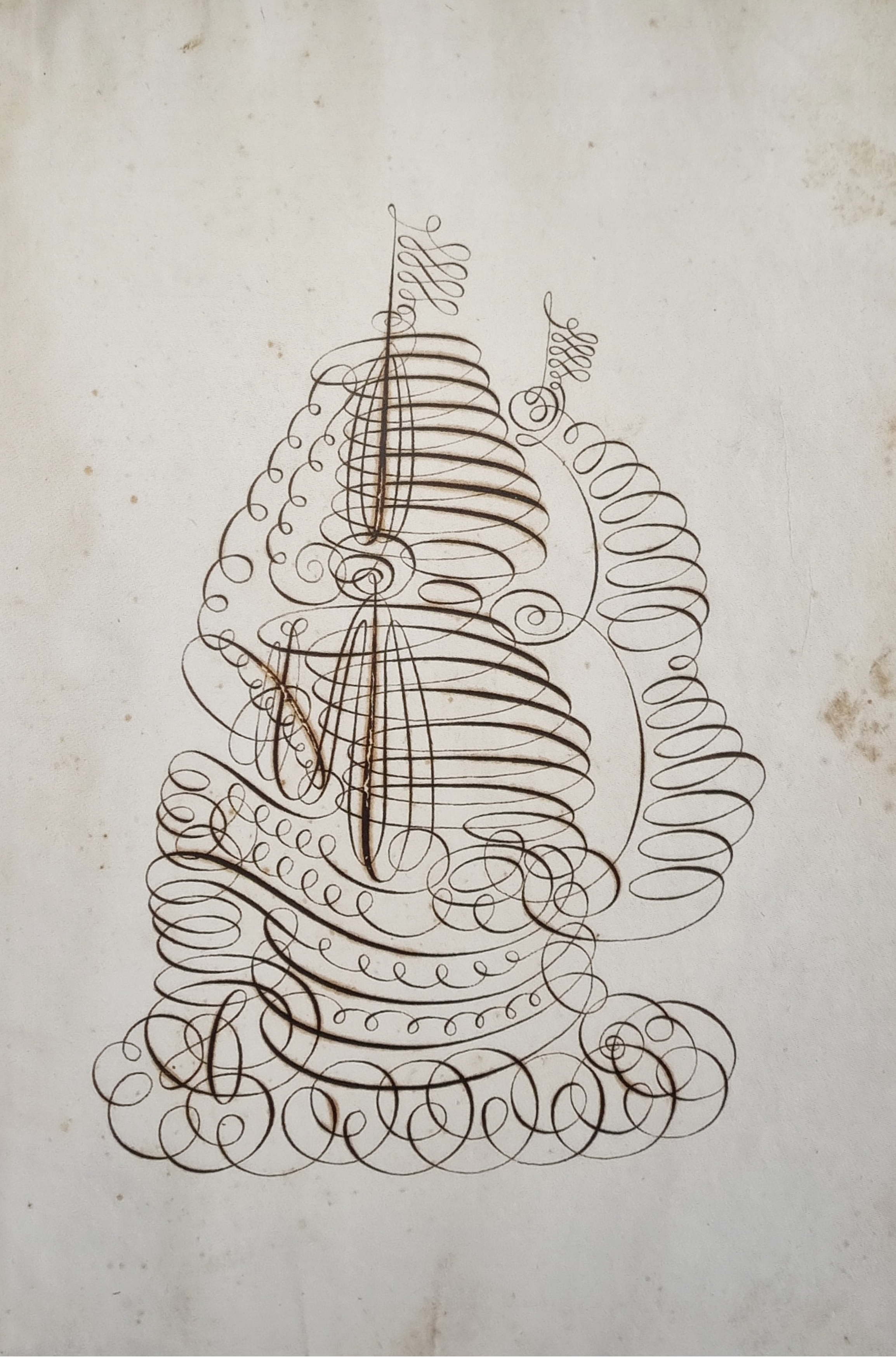 Giovanna was also an accomplished calligrapher, having studied Italic (or corsivo) lettering from a 1605 Dutch manual by Jan van de Velde the Elder. From the same book, she copied Galleon at Sea, a continuous-line drawing of a ship sailing through the foaming sea, that prophetically echoes her future travels across Europe.